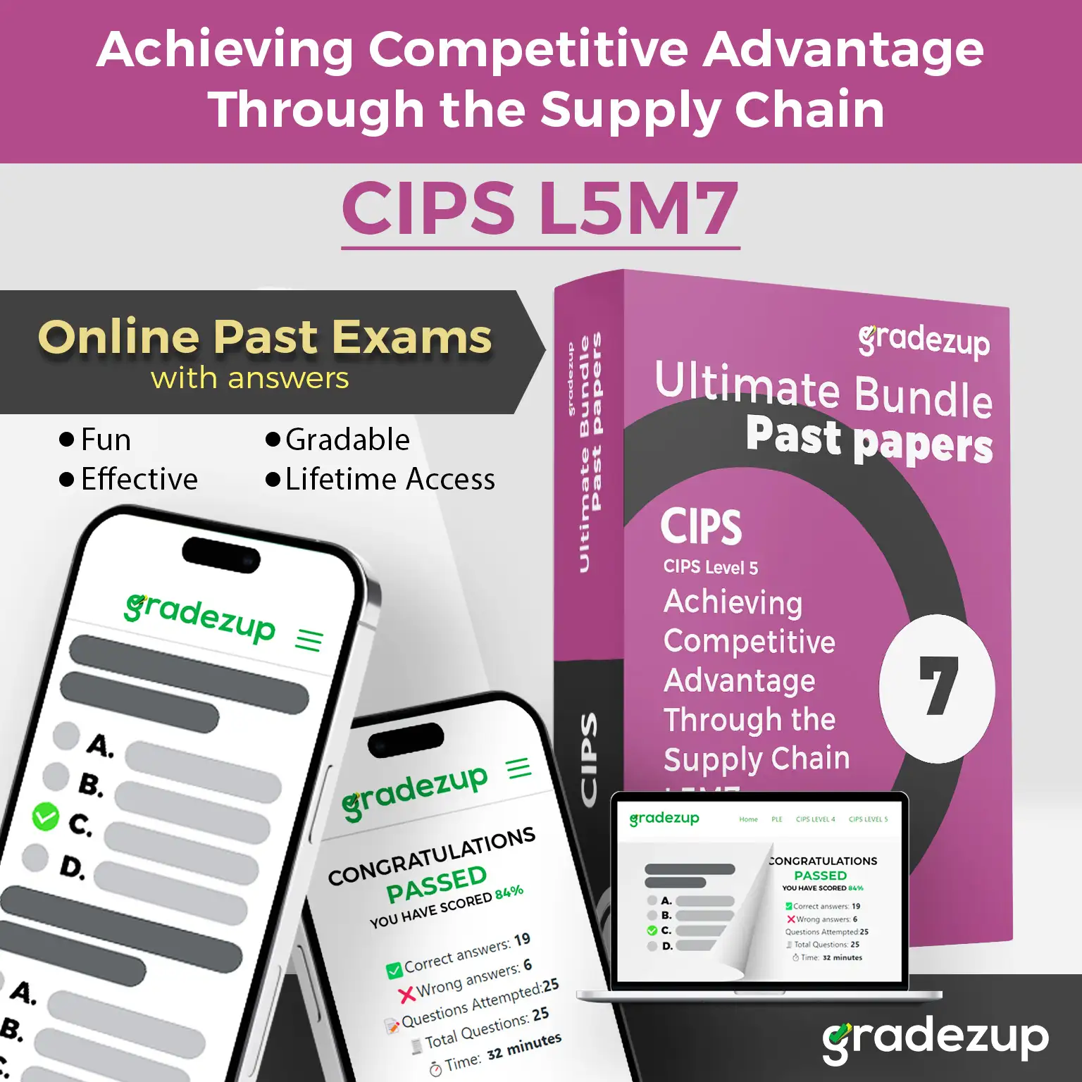 Prepare for your L5M7 Achieving Competitive Advantage Through the Supply Chain bundle exam with Gradezup. This module includes 15 practice quizzes with 200+ questions designed to test and reinforce your knowledge.